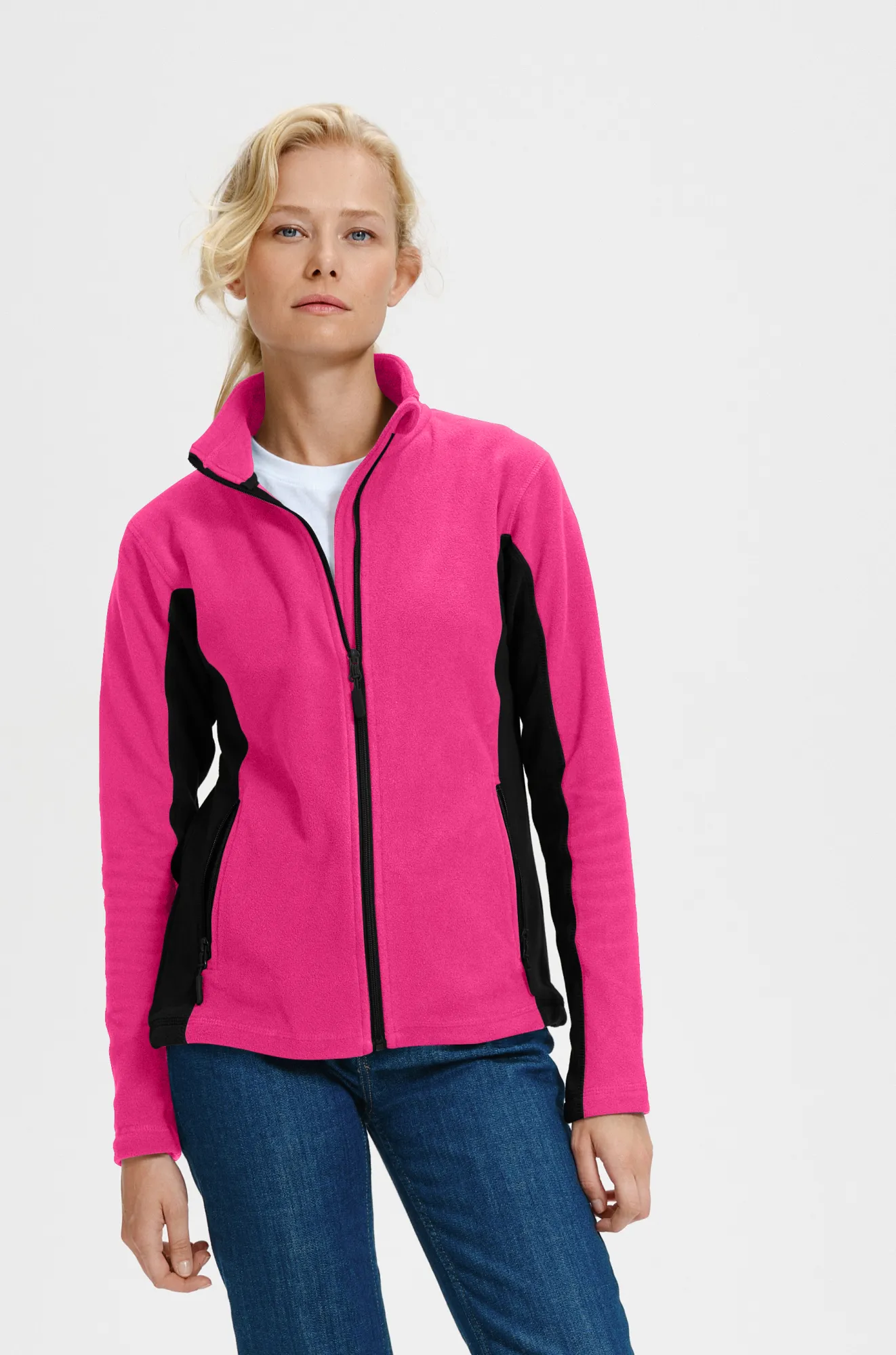 Ženska jakna od kontrasta od flisa, ružičasta, M